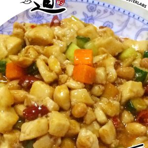 鸡丁炒差不多的时候倒入调好的汁 再将葱、姜、蒜树椒 花生黄瓜胡萝卜下入继续翻炒片刻即可。