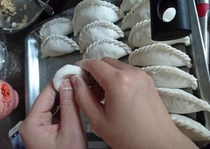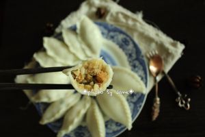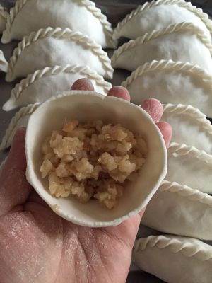 成为一个碗状,装入馅料,像包饺子,边缘捏紧,捏出花边,下锅蒸15分钟即可。
