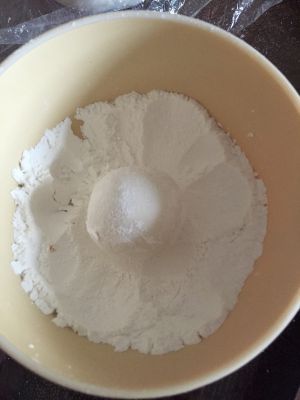 粘米粉和糯米粉拌匀,取60g粉加水揉成团,水逐量加,加至成团即可,我大概加了50g左右水