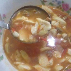 水煮开后豆腐就可以下锅啦,煮一会儿后尝一下味道,如果不够咸稍微加点盐,其实酸酸的番茄味儿已经足够了。
