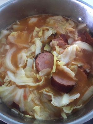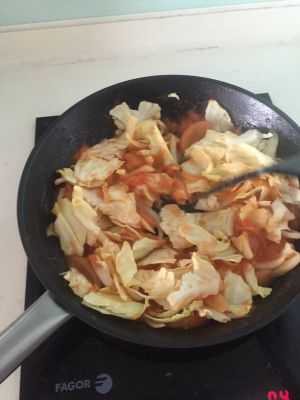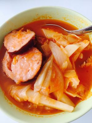 备料~ 土豆去皮切丝(切片也可以,根据个人喜好),番茄洗净切块,卷心菜洗净切开