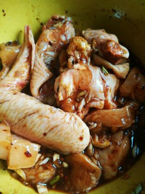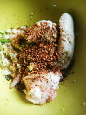 鸡翅划几刀,把葱姜蒜切碎,把调料放进去