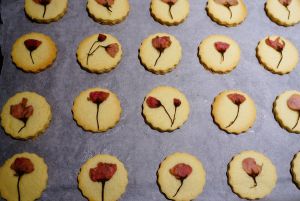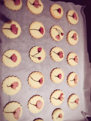 樱花提前个小时用开水泡开,时间越久樱花就没那么咸、记得多换几次水哦。黄油室温软化后倒入糖粉用搅拌机搅拌均匀,分三次加入全蛋液搅拌均匀,低筋粉和奶粉过筛后揉成面团,擀成厚度为5cm的面皮-用模具压成想要的形状-用纸巾将樱花水分吸干后放置饼干表面贴合-烤箱160度预热10分钟放入成型的饼干继续烘烤20分钟左右就完成啦,是不是很简单呢?