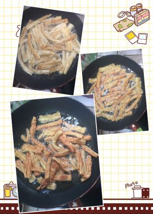 加入泡好的腐竹,小火炸至金黄色即可