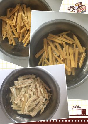 腐竹用剪刀剪成适合的段,温水浸泡15分钟左右即可