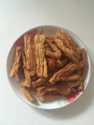 炸好的腐竹捞出沥干油