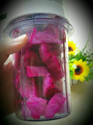 火龙果放料理机打成泥备用