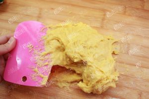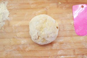 用刮板或是刀把面团刮起来捏成团,拍点玉米淀粉。防粘的。盖上保鲜膜静置十几分钟左右。
