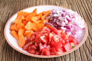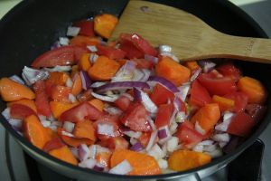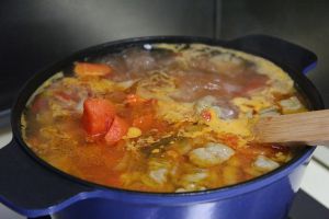 接着倒入番茄和洋葱丁(西红柿和洋葱要切小点,这样全部都化在汤里很入味)