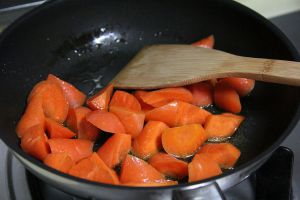 炒锅里放少许色拉油,先放入胡萝卜过一下