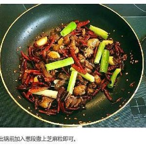 用料:鸡腿肉、干辣椒、花椒、葱姜蒜、黑胡椒、盐、生粉、橄榄油、白芝麻