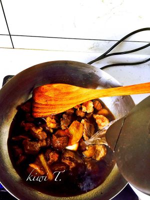 大火烧开,小火慢炖一小时二十分钟,过程中看着点汤哦,不够就再添点热水,避免糊锅。(高压锅20分钟)