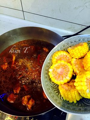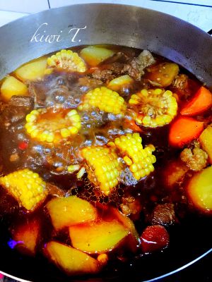 一小时二十分钟后加玉米。(这个时候如果发现汤不够了就再添点儿水)