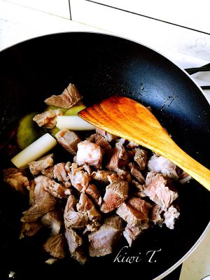 把肉和调料全部换到炖锅中,加开水盖过羊肉。(水多一点)