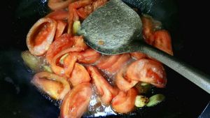 必须是春天这种粗杆的菠菜,西红柿去皮 鸡蛋炒出备用。