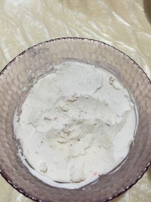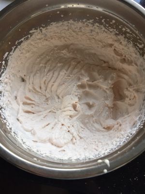 打发至5分发时一次性加入草莓汁