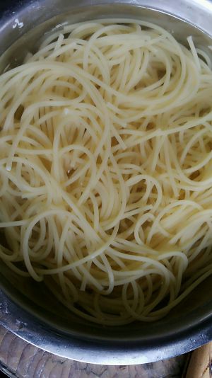 将意大利面放沸水中煮10-15分钟,然后放凉水中。