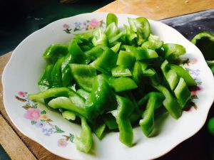 尖椒切宽丝,可按个人喜好自己把控。