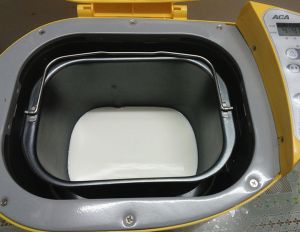 准备好食材,面包机内桶、搅拌棒需用开水烫下晾干