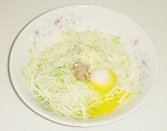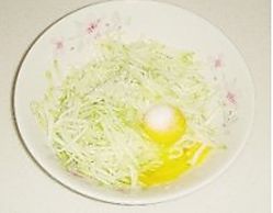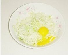 在盛有西葫芦丝的盆中磕入两只鸡蛋
