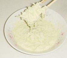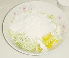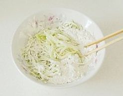 用筷子顺时针混合西葫芦丝和面粉