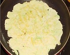在做热的平底锅里放一小勺橄榄油,油热后舀一勺面糊摊成饼状