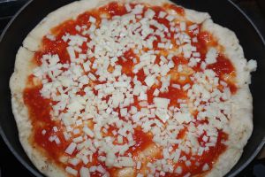 抹上蕃茄酱,再撒上一层芝士(蕃茄酱可以自己做就好,非常简单)