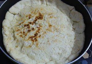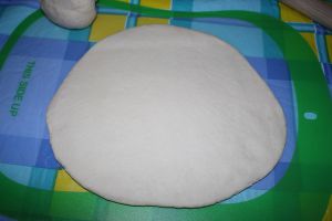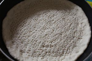 用叉子在上面扎无数小孔,防止膨胀。哈哈,密集恐惧症就委屈你们了。边缘稍微卷一小圈上来。开小火慢慢煎(我用的是电磁炉,受热会比较均匀)3分钟左右翻一下看看有没有微焦,有的话就可以翻面,没有的话就继续煎