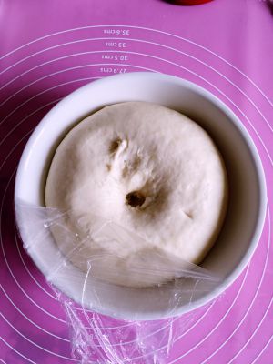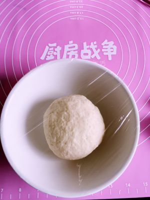 揉捏成团后用保鲜膜封住,放在温暖地方发酵!夏天,我放在窗台上,大约一个小时!