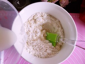 酵母君放进清水溶化,盐、细砂糖和高粉混合,慢慢加入酵母君清水抓揉面粉溶水性不一,最后10克水一定要根据揉捏情况而定!揉捏成团后加入黄油!继续揉捏!