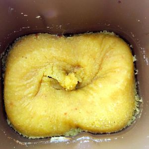 将压碎好的绿豆放进面包机,先设置20分钟和面
