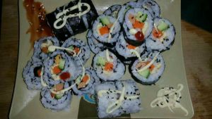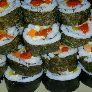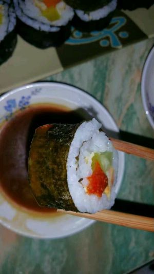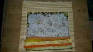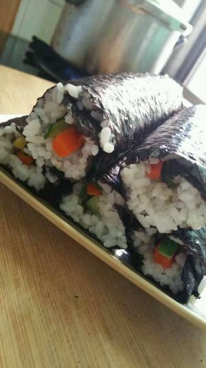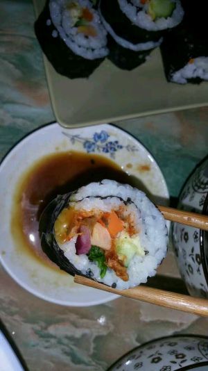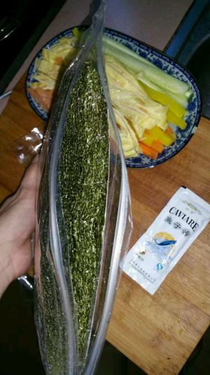 米饭用自制寿司醋拌匀,盐,糖,醋。洒点熟芝麻