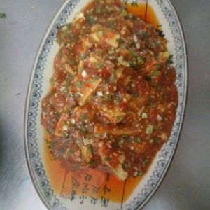 锅里放油加泡辣椒末和姜蒜炒香,加鲜汤放盐、料酒酱油白醋白糖烧开放水淀粉勾兑,加葱花和味精,最后淋入茄子上面
