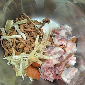 茶树菇,花胶,蜜枣洗净(花胶不用浸泡)