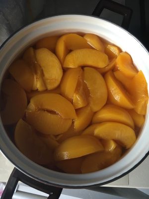 分次煮好所有的黄桃,将桃汁和桃肉分离,此时桃汁甜度正好,放凉装罐,桃子肉处于比较酸的状态,但是软硬度合适,这个时候用1L热水溶解500g白糖配成浓糖水,将煮好的桃肉放入浓糖水中浸泡6小时,如果感觉桃子不够甜,但是水已经变酸的话就把酸水倒出,再配置一次浓糖水继续浸泡,够甜的话就不必再配置了