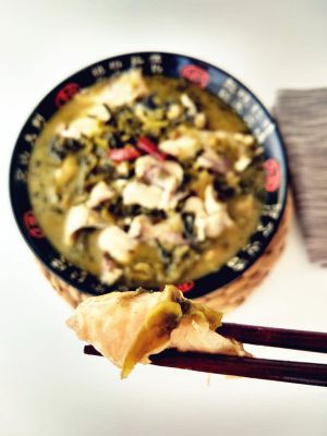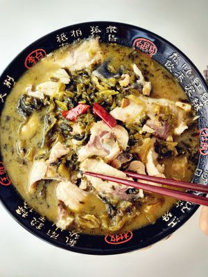 盛出后,将鱼片在碗中堆起,稍高于汤面,少许蒜粒洒在鱼片上,用少许热油淋在蒜片上,味道更香。