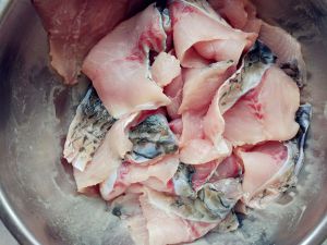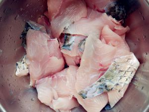草鱼刮鳞,去内脏,洗净,剁去头部,将鱼肉贴骨片成0.5厘米左右的鱼片