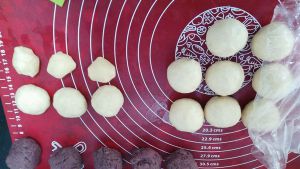 油皮面团分成每个20左右克剂子,油酥分成每个11克剂子