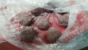 豆沙馅加30克木糖醇拌匀,分成20克一个的小剂子