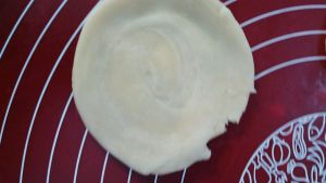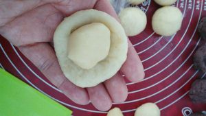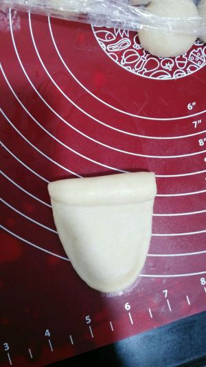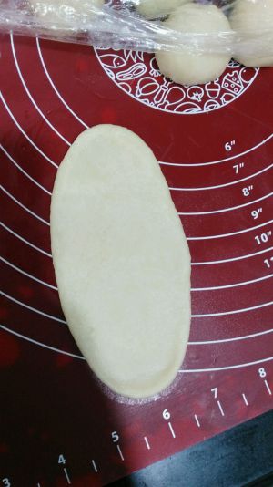 全部做完以后盖保鲜膜静置15分钟,擀皮,包豆沙馅