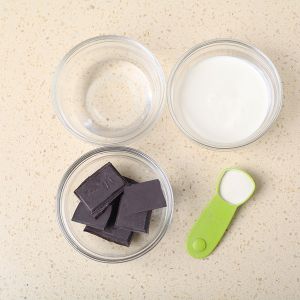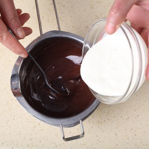 接着将黑巧克力隔水融化,接着将黑巧克力隔水融化,淡奶油缓缓倒入巧克力中搅拌均匀