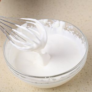 接下来打发淡奶油,打至浓稠低落的状态6-7分发左右