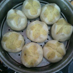 将酵母分别倒入面粉中,揉成光滑面团。(南瓜泥有点干,可适当加些水。)