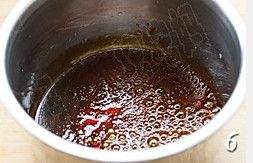 砂糖与水小火加热至焦糖色,注意边加热要边不停搅拌,不要关火;
