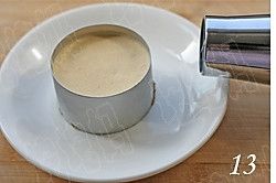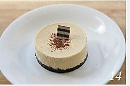 小慕斯圈用锡纸包好底座,取适量黄油饼干用勺把压平,送入冰箱冷藏备用;