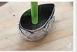 至巴巴露完全凝固时,取出,去除锡纸,装入盘中,用吹风稍稍吹一下周边,然后提起,即可轻松脱模;