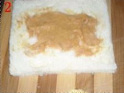 在面包片中间涂上花生酱;