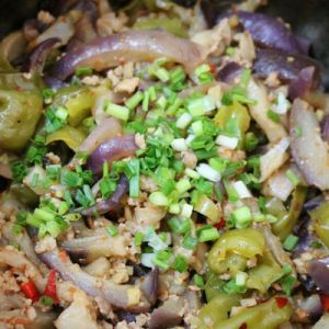 倒入刚炒好入味的茄子,然后小火至中火焖5分钟
