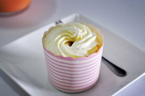 裱花袋中装入中号8齿花嘴,再装入微硬的奶油霜。