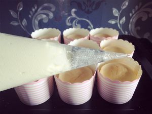 送入烤箱中层,145度35分钟。(纸杯6分满35分钟,若8分满,烤箱时间可延长5分钟)